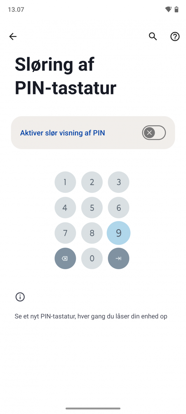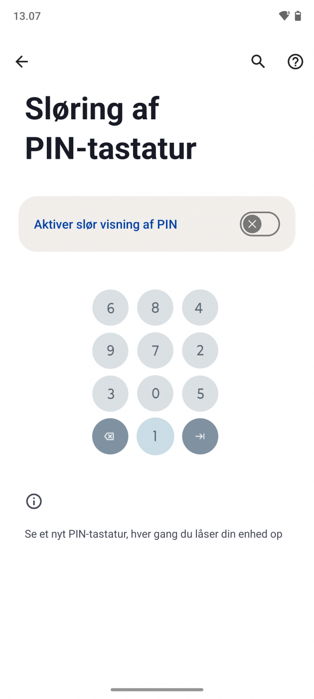 En fed sikkerhedsfunktion er “Sløring af PIN-tastatur”, hvor tallene på tastaturet flytter sig, hvis man har talkode til at logge ind. På den måde er det langt sværere af se, hvilke tal man trykker på, hvis nogen kigger en over skulderen med henblik på at aflæse koden.