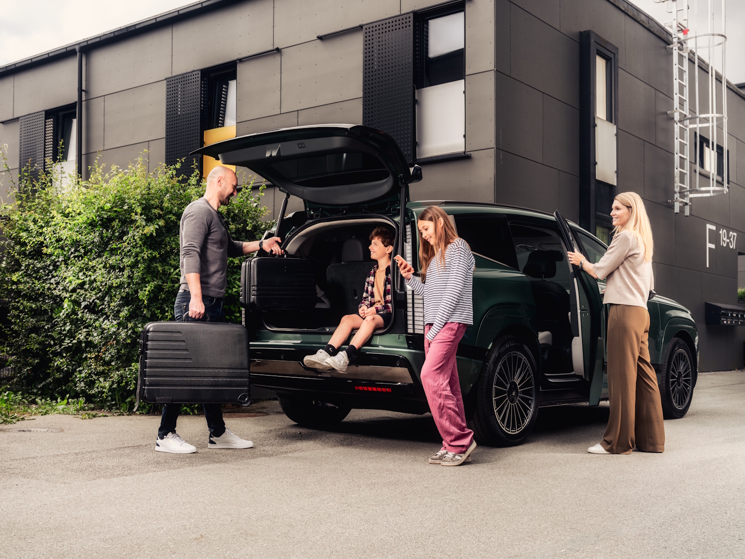 I modsætning til mange andre SUV’er er tredje sæderække i IONIQ 9 ikke kun for børn. Her kan selv voksne sidde komfortabelt med god lofthøjde og benplads. Selv med alle sæder i brug rummer bagagerummet 338 liter. Adgangen til bageste sæder er let, og hele kabinen føles som en lounge med plads til hele flokken.