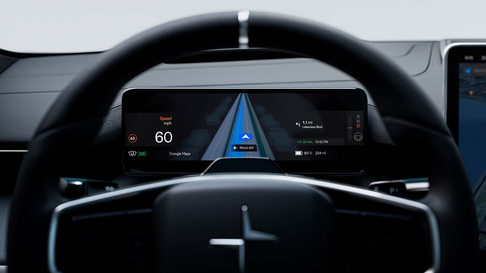Det nye “Live Lane Guidance” til Google Maps kommer i en opdatering senere, men kommer i første omgang til elbilen Polestar 4, der er udstyret med Android Automotive med Google Built-in.