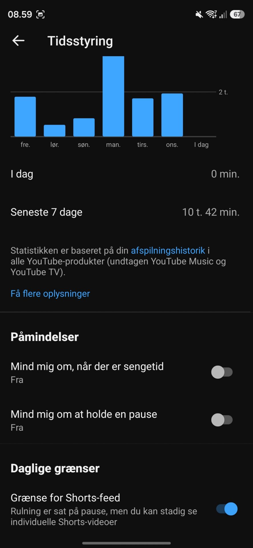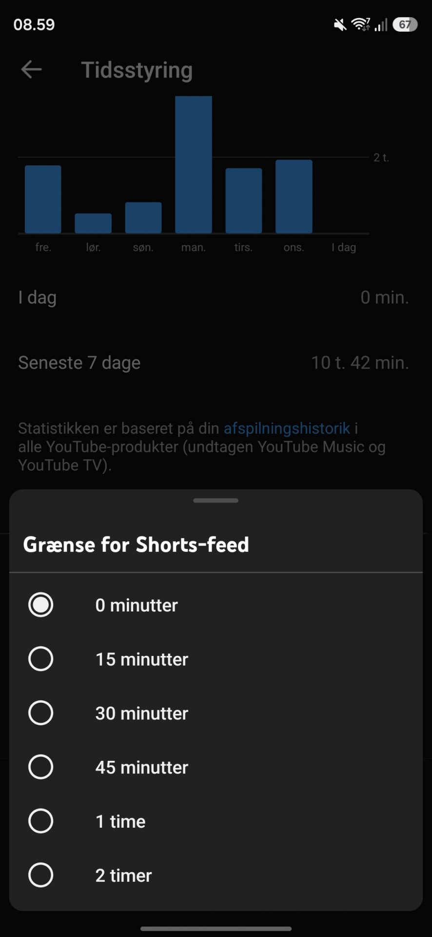 YouTube har netop opdateret deres indstillinger for tidsstyring, så man nu kan sætte en tidsgrænse for Shorts fra to timer og helt ned til nul minutter.