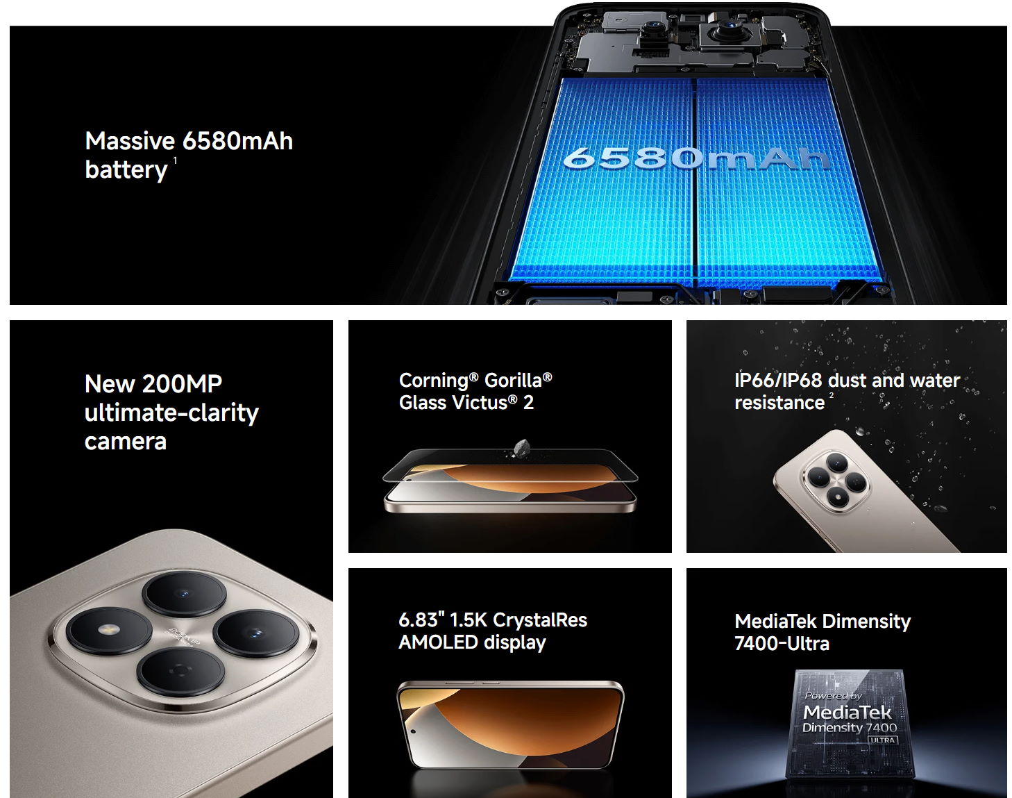 Andre overraskende specifikationer er store batterier på op til 6.580 mAh, som sikrer strøm til flere dage. Topmodellen lader endda med hele 100 W, så du er køreklar på få minutter.
