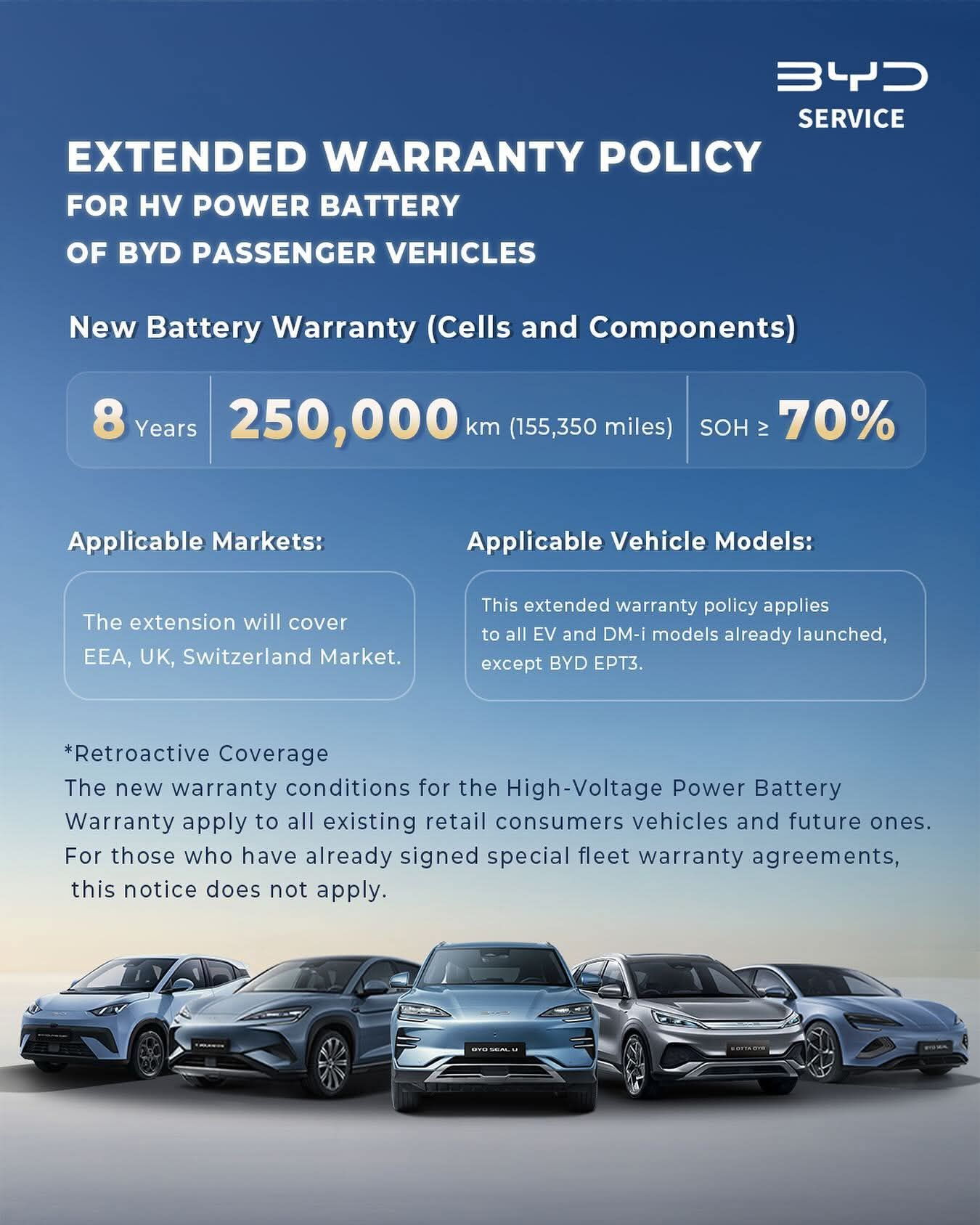 Den nye batterigaranti gælder også for eksisterende BYD-ejere i Europa, tyder det på. Det betyder, at både nye og gamle kunder får den længere dækning.
