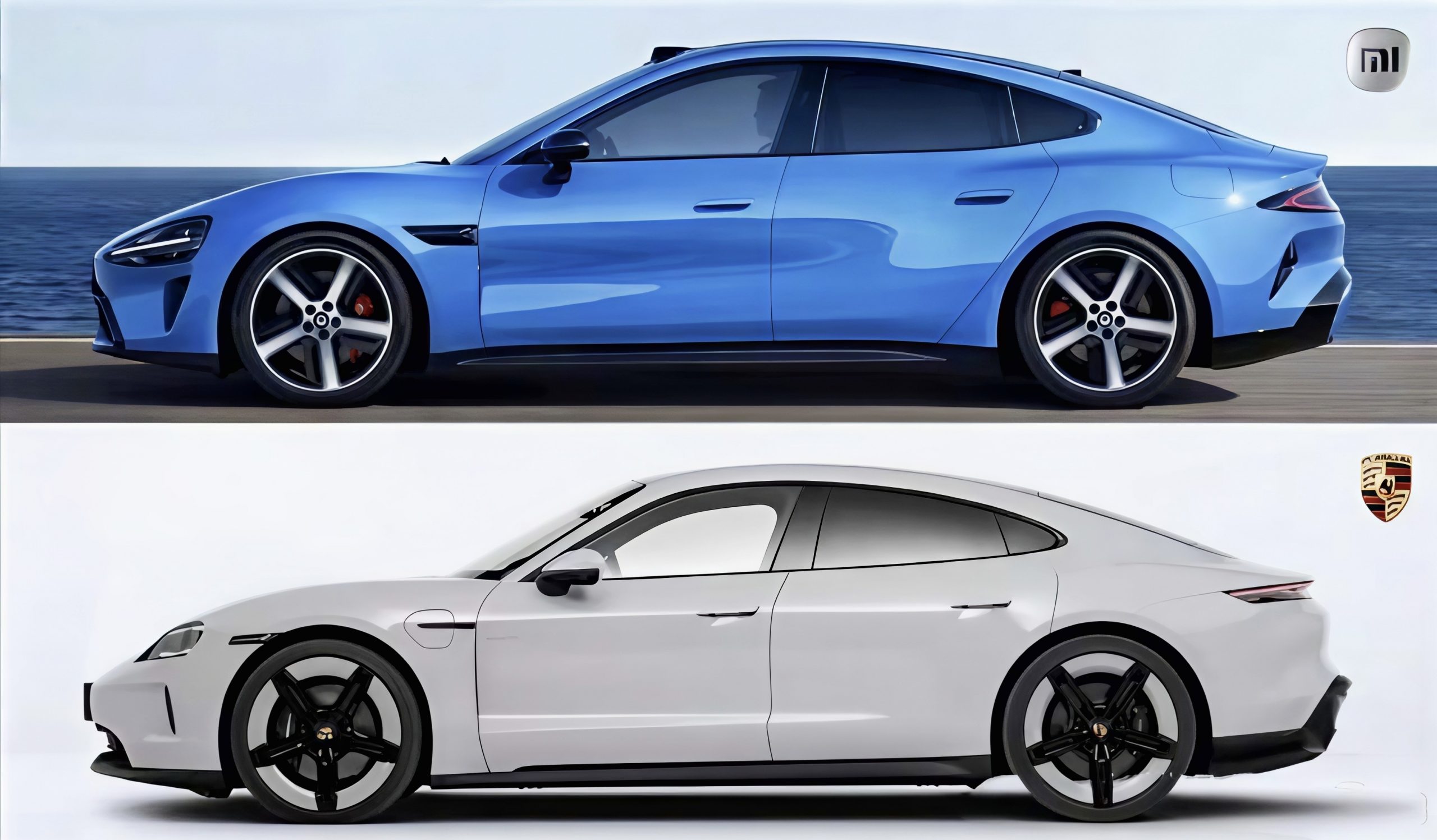 Den kommende elbil har en slank coupé-lignende silhuet, og kigger man på designet, er ligheden med luksusbilen Porsche Taycan slående.