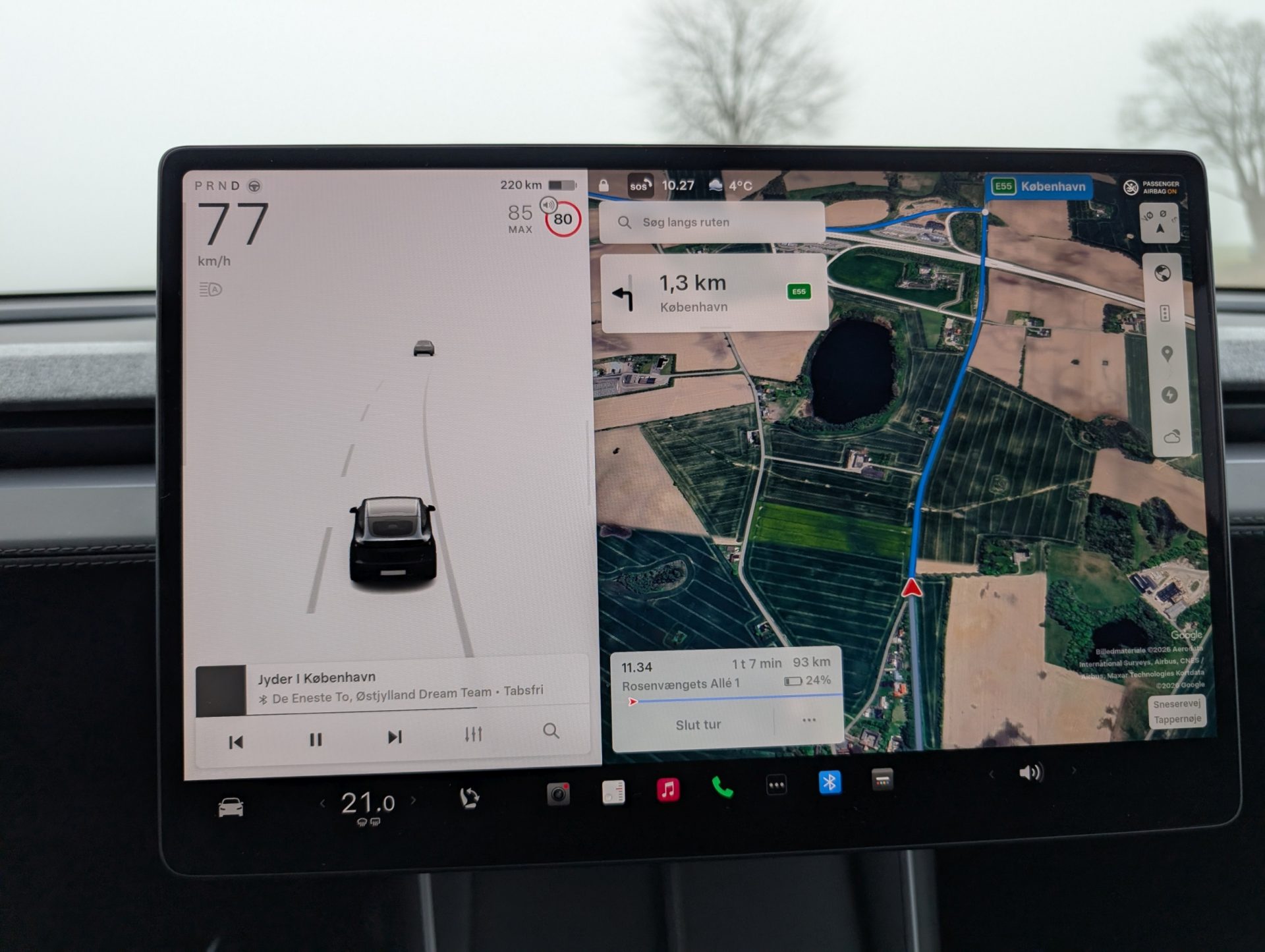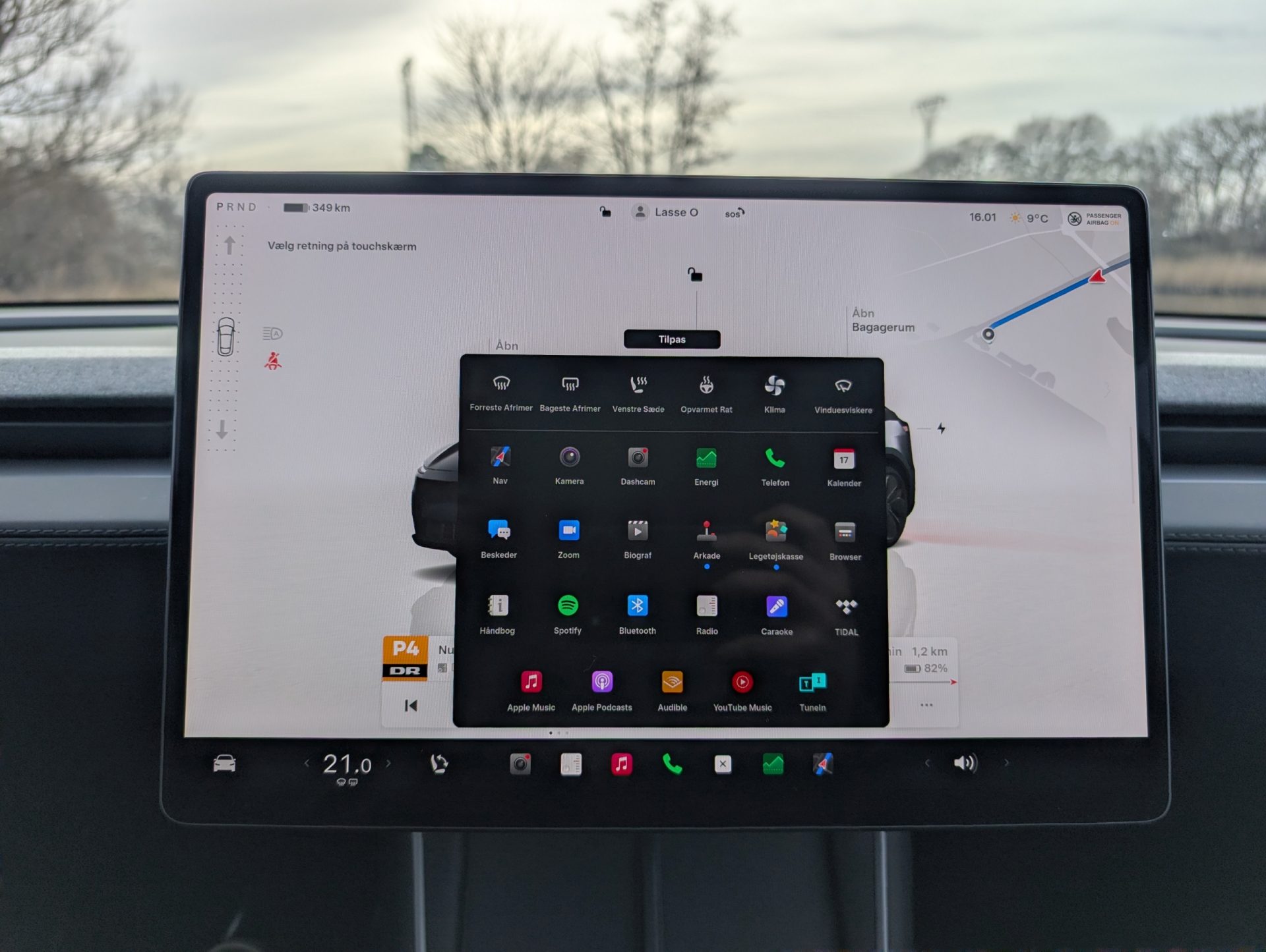 Softwaren mangler desværre Apple CarPlay og Android Auto, selvom sidstnævnte længe har været rygtet på vej, men Teslas eget system er så velfungerende og integreret med Spotify og navigation, at det er den bil, hvor man absolut bedst kan undvære det.