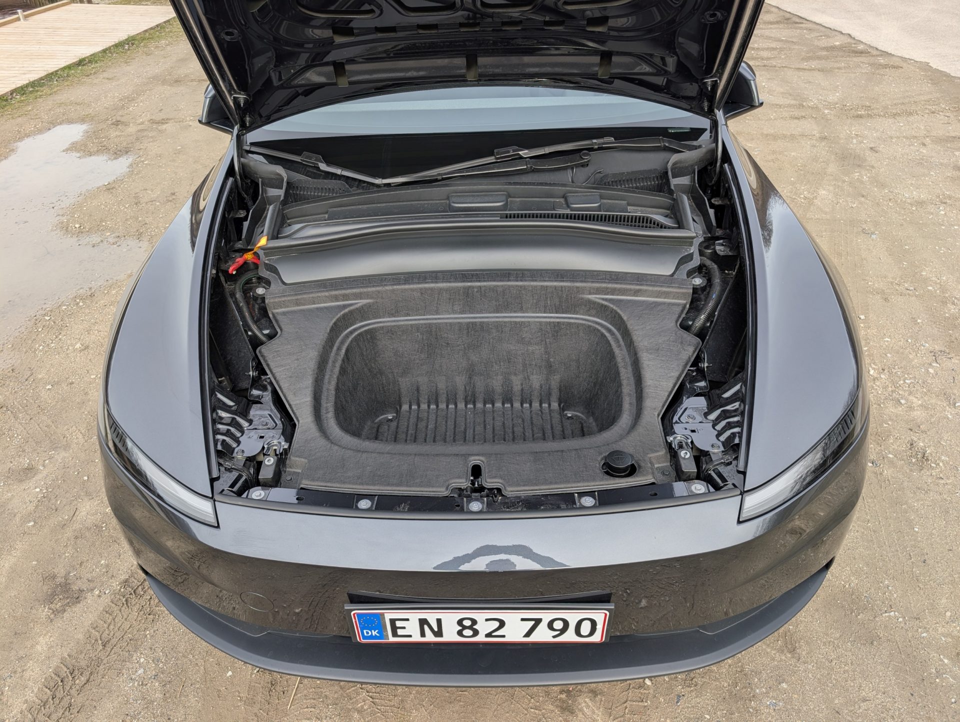 Dertil kommer et ekstra opbevaringsrum under motorhjelmen – det såkaldte “frunk” – på hele 117 liter. I det seneste facelift er frunken endda udstyret med et praktisk dræn i bunden, så man i princippet kan fylde det med isterninger på en varm sommerdag for at køle drikkevarer, eller man kan bruge det til mudrede støvler og efterfølgende spule det rent.