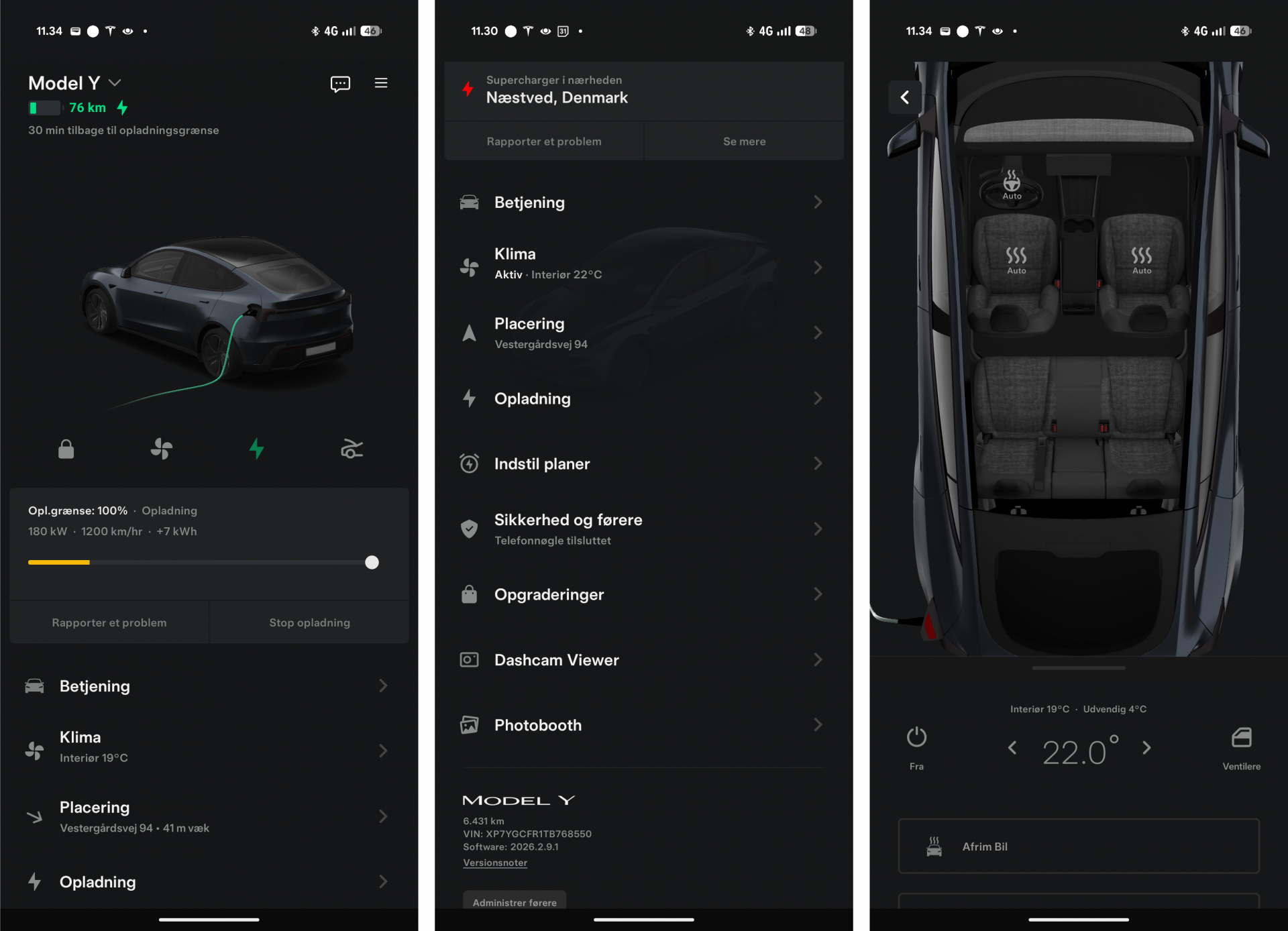 Til gengæld er Tesla-appen til smartphonen en ren fornøjelse. Den er markedets mest funktionsrige, tillader fuld fjernstyring af klima, oplåsning, overvågning (Sentry mode) og sender destinationer sømløst fra mobilen direkte til bilens navigation.