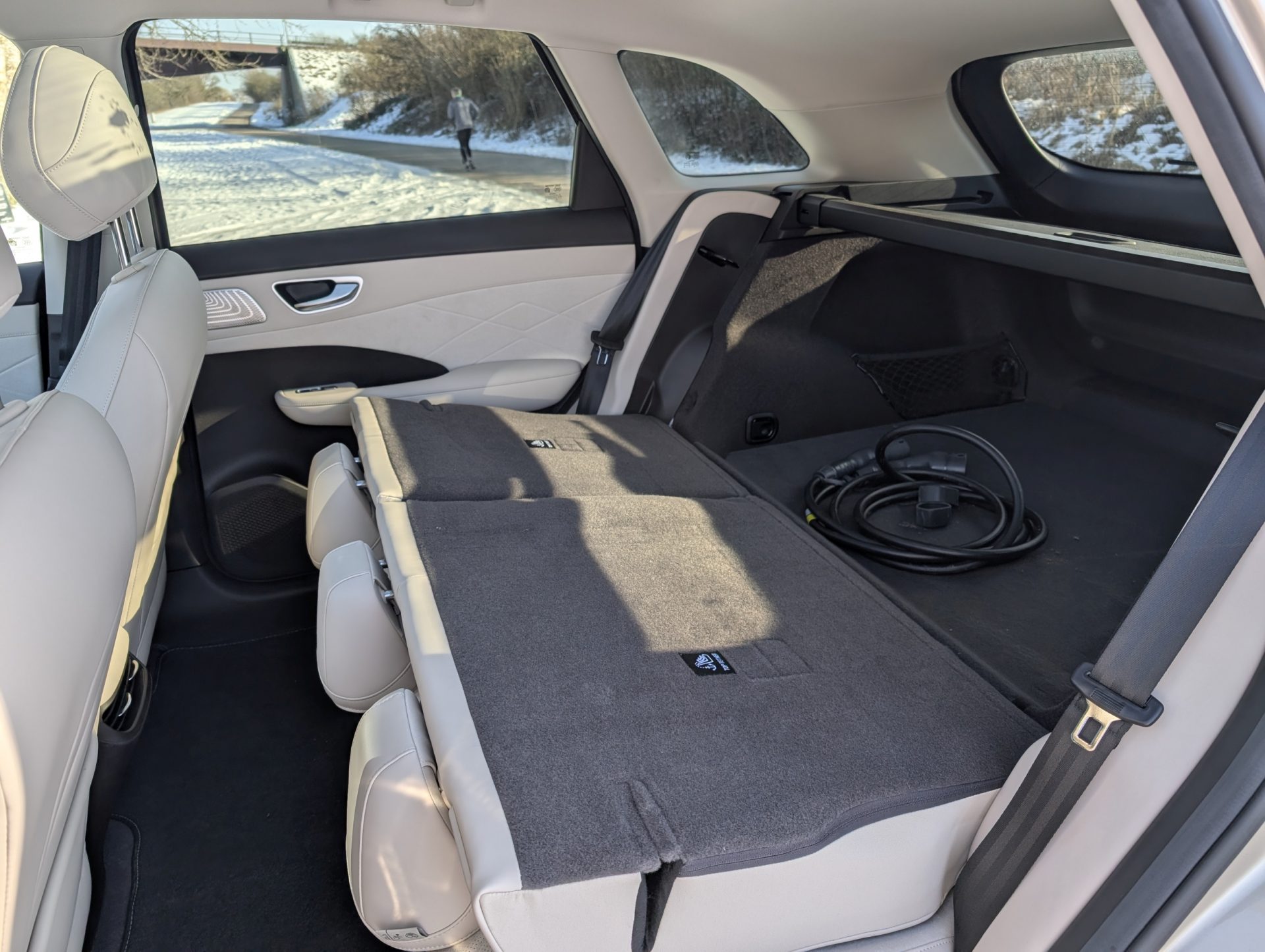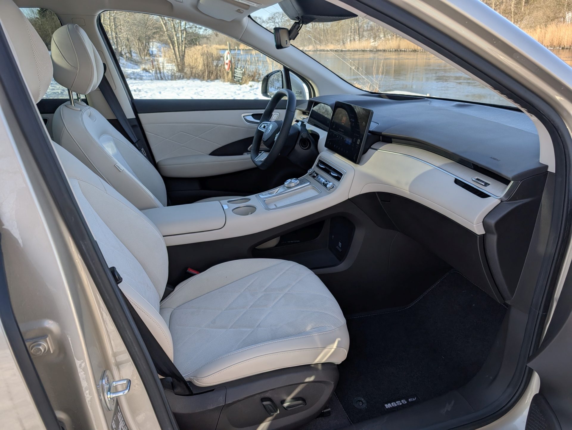 Som standard får man features, der ofte koster ekstra hos konkurrenterne. Listen inkluderer blandt andet varmepumpe, glastag, 2-zoners klimaanlæg (som dog ikke opvarmer kabinen tilstrækkeligt), ventilerede forsæder, ratvarme, varme i forsæder og bagsæder, 360-graders kamera, head-up display, elektrisk bagklap, 20 tommer alufælge, trådløs opladning af mobil med køling, V2L og eljusterbare forsæder.