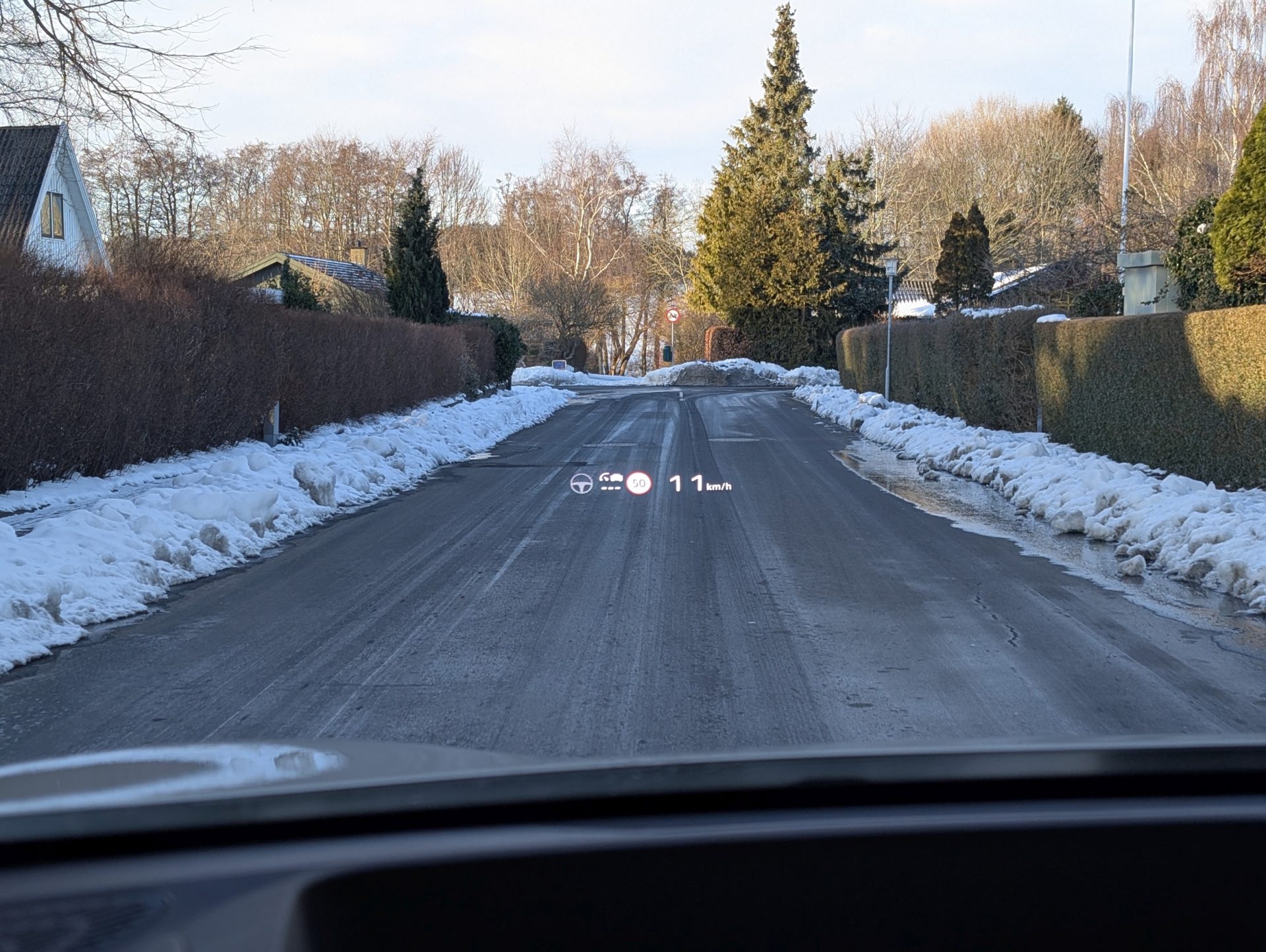 Head-up displayet er en fin tilføjelse, selvom den kan virke næsten lidt blændende i lysstyrken, og rammen omkring projektionen er tydelig i mørke.