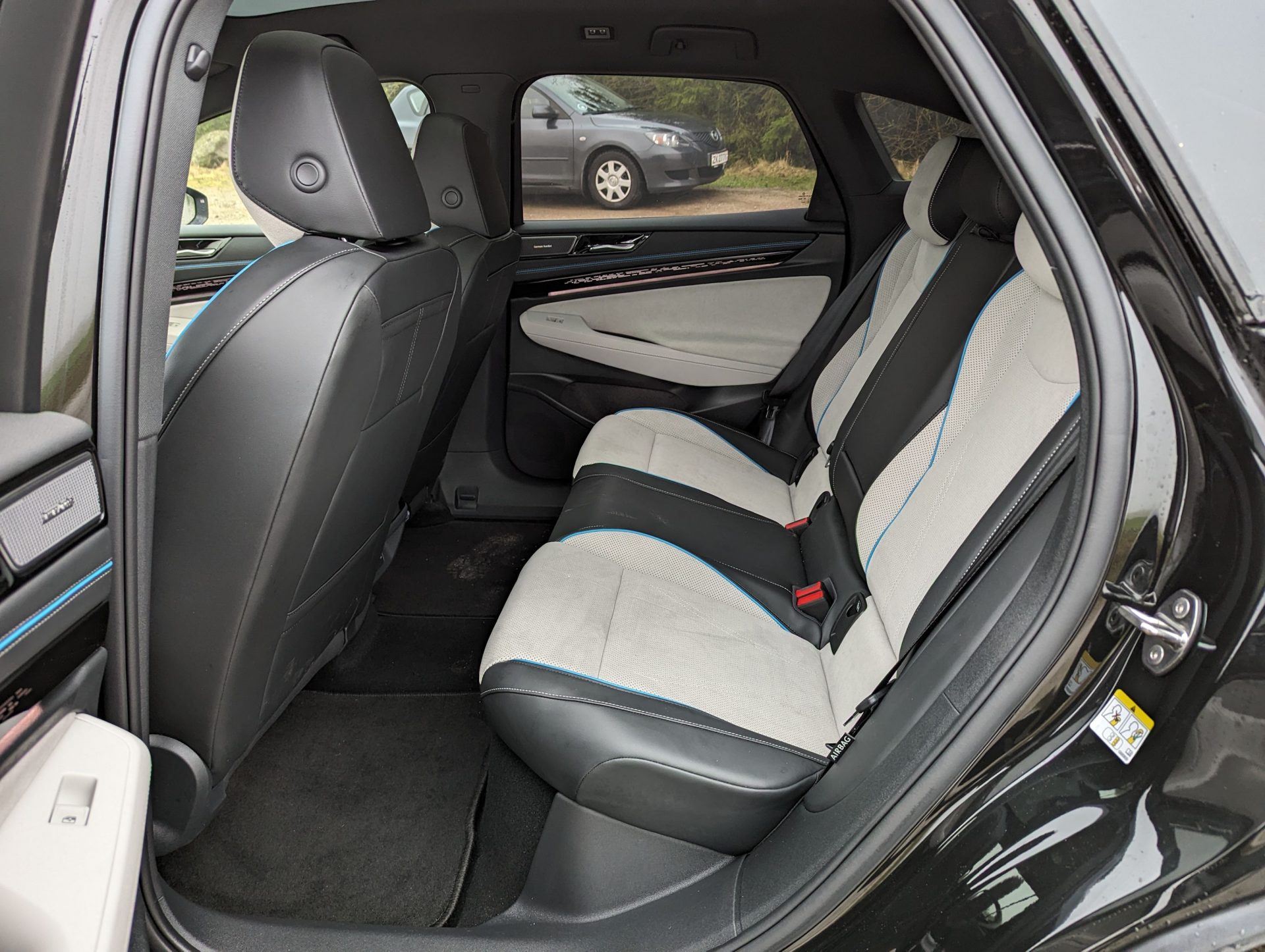 Bagsædet byder på enorm benplads, men siddestillingen bagi er ikke helt optimal for voksne på grund af et højt gulv, da batteriet i bunden tvinger knæene lidt op.