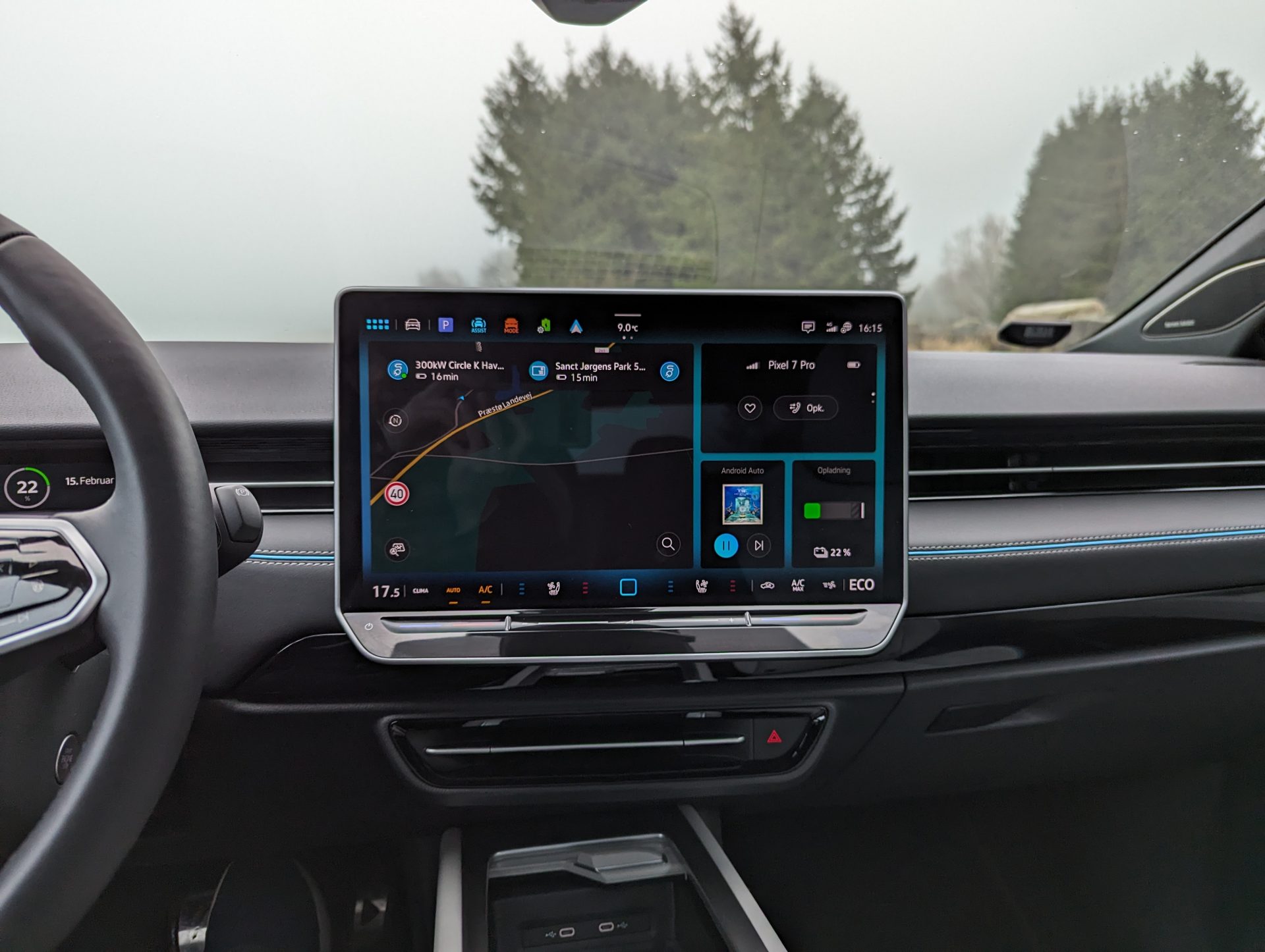 Softwaren i ID.7 er en af de mest mærkbare forbedringer fra Volkswagen i nyere tid. Den centrale 15-tommer infotainmentskærm er vokset betydeligt og kører på et nyt, hurtigere system, der er langt mere brugervenligt end de tidligere udgaver.