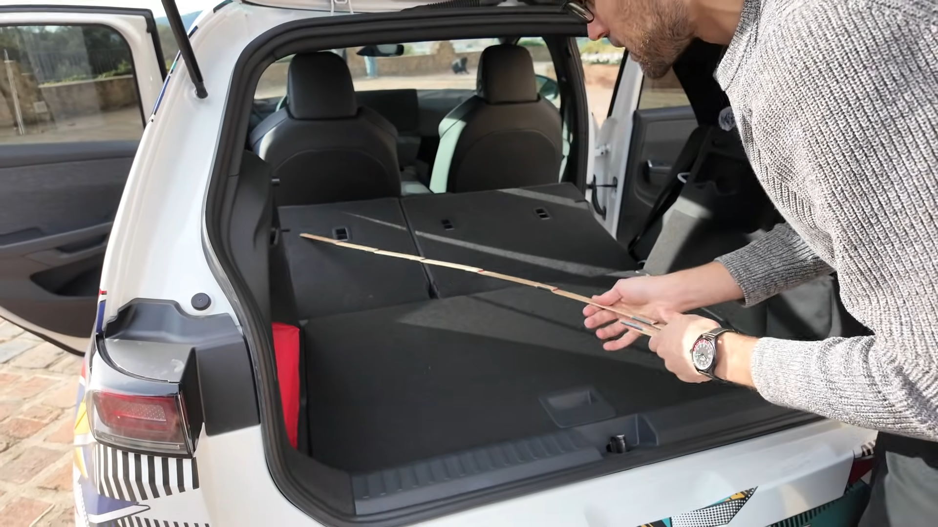 Bagsædet er dog en anden historie. Her mærker man bilens kompakte størrelse. Værten i videoen, der er en mand på 189 cm, kan lige akkurat sidde der, men benpladsen er trang. Til gengæld er der fin lofthøjde, og gulvet er helt fladt, hvilket gør midterpladsen mere brugbar.