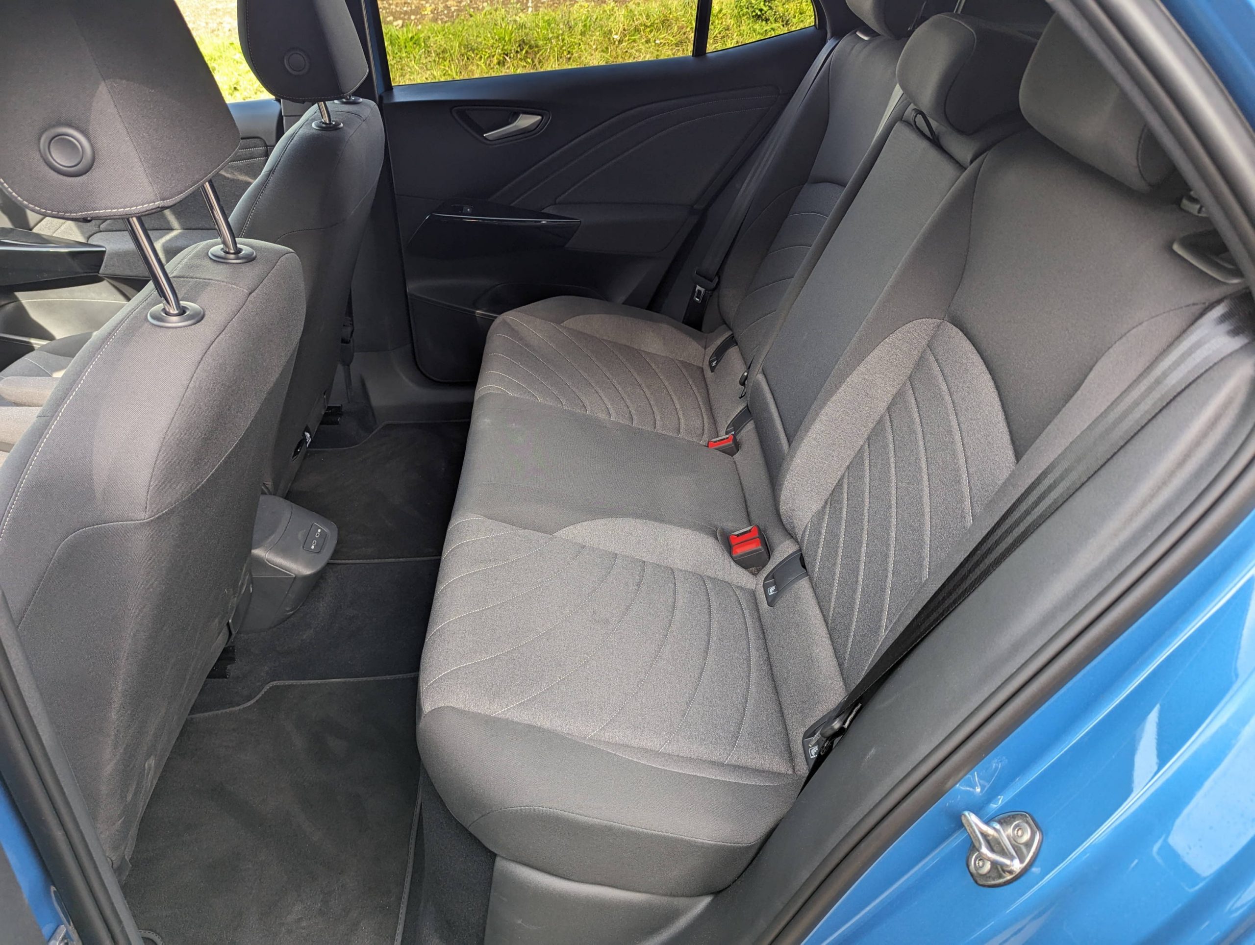 ID.3 har siddepladser til fem personer, og der er ISOFIX-beslag på de to yderste bagsæder samt på passagersædet foran, hvilket gør den praktisk for børnefamilier. På bagsædet er der fin plads til både knæ og hoved, så længe man ikke er en alt for høj person, og siddehynden giver en god position med fin lårstøtte.