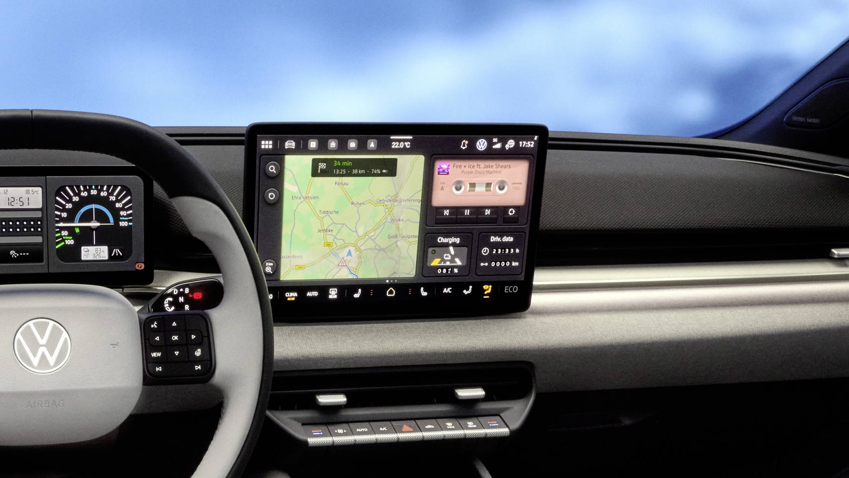 Volkswagen har endnu ikke vist den endelige brugerflade frem, men herunder kan man se den, da den blev fremvist i ID. Polo konceptbilen.