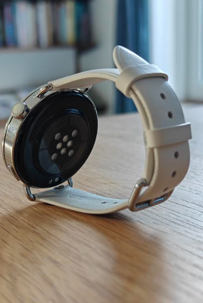 Trods det elegante ydre er Watch S4 41 mm spækket med sundhedsfunktioner. Den nye 4-LED + 4-PD sensor sikrer mere præcis pulsmåling i realtid – også under svømning. Hertil kommer overvågning af: