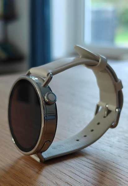Skærmen er 1,32″ og er af typen AMOLED med opløsning på 466 x 466 pixels. Lysstyrken er tilpas høj, og med “Sunlight Mode” forbliver skærmen læsbar selv i direkte sol. Always-on display fungerer flot, men forkorter mærkbart batteritiden, så vi anbefaler at aktivere det tidsbegrænset.